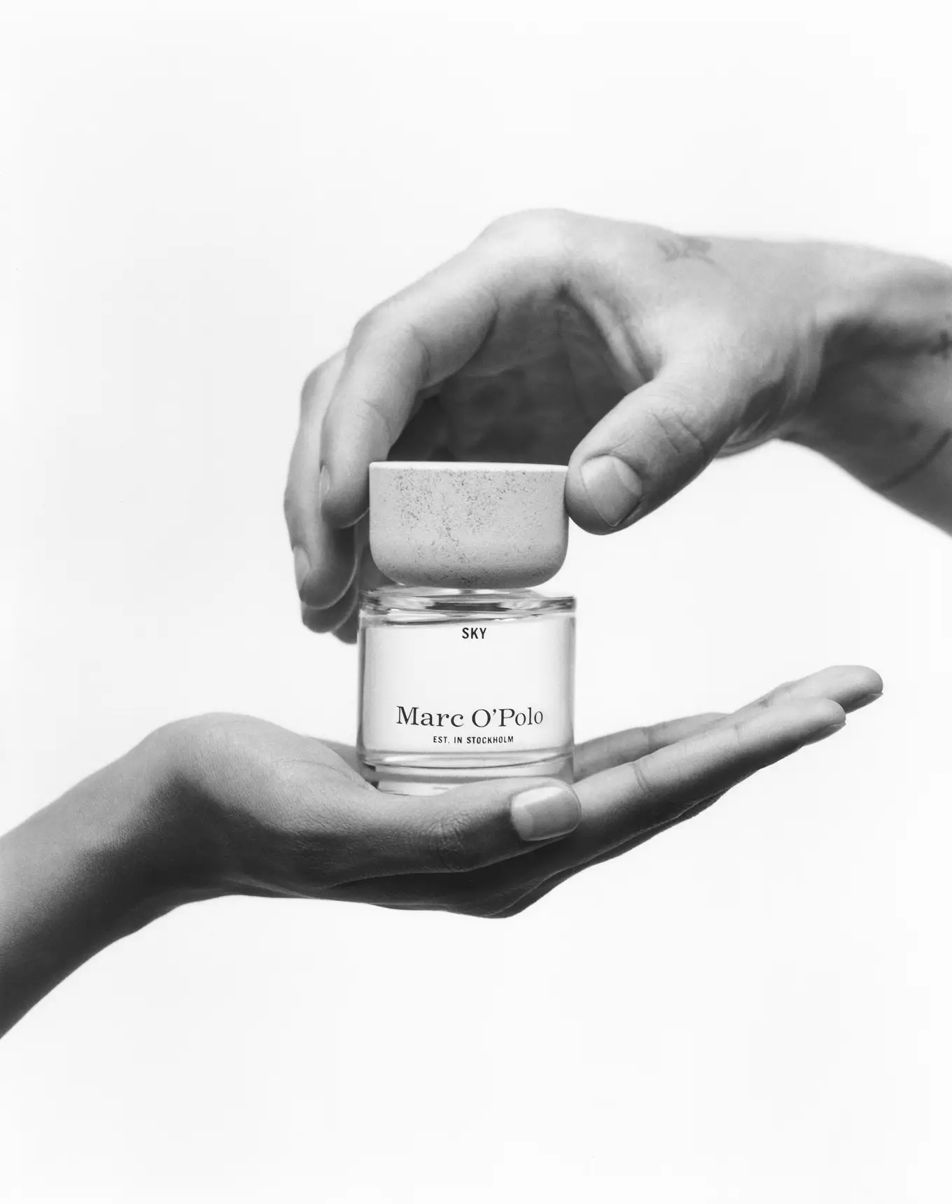 THE GENDERLESS EAUX DE PARFUM BY MARC O’POLO. 100 % INGREDIENT TRANSPARENCY. The new fragrance collection includes three eaux de parfum, named ‘Sky’, ‘Rain’ and ‘Earth'. Genderless and timeless, they take you on a journey to the Scandinavian roots of the brand: from the bright skies, gently down to the earthy ground. A hand soap, hand cream and room diffuser round off the fragrance line. The eaux de parfum and room fragrance convince both with their 100 % ingredient transparency and with their Clean Beauty certificate, the attainment of which was a key aspiration of the brand from the very beginning. Additionally, all fragrances are vegan and have been developed without animal testing. Thus, Marc O’Polo underlines its own claim to high quality and the complete renunciation of harmful ingredients. Our hand care essentials, which also adhere to this claim, consist entirely of natural, NaTrue-certified ingredients. Marc O‘Polo has thus positioned itself as a sustainable pioneer in the market segment and sees as its corporate responsibility to play a leadership role for people and the environment. Susanne Schwenger, CPO of Marc O’Polo, SE says: “Marc O‘Polo stands for a conscious, Scandinavian attitude to life. The new, holistic fragrance concept therefore perfectly complements our collections as well as our Home and Living offerings. Inspired by our Swedish roots, the new fragrances exude naturalness in an aromatic yet minimalist way that’s just very Marc O‘Polo.”