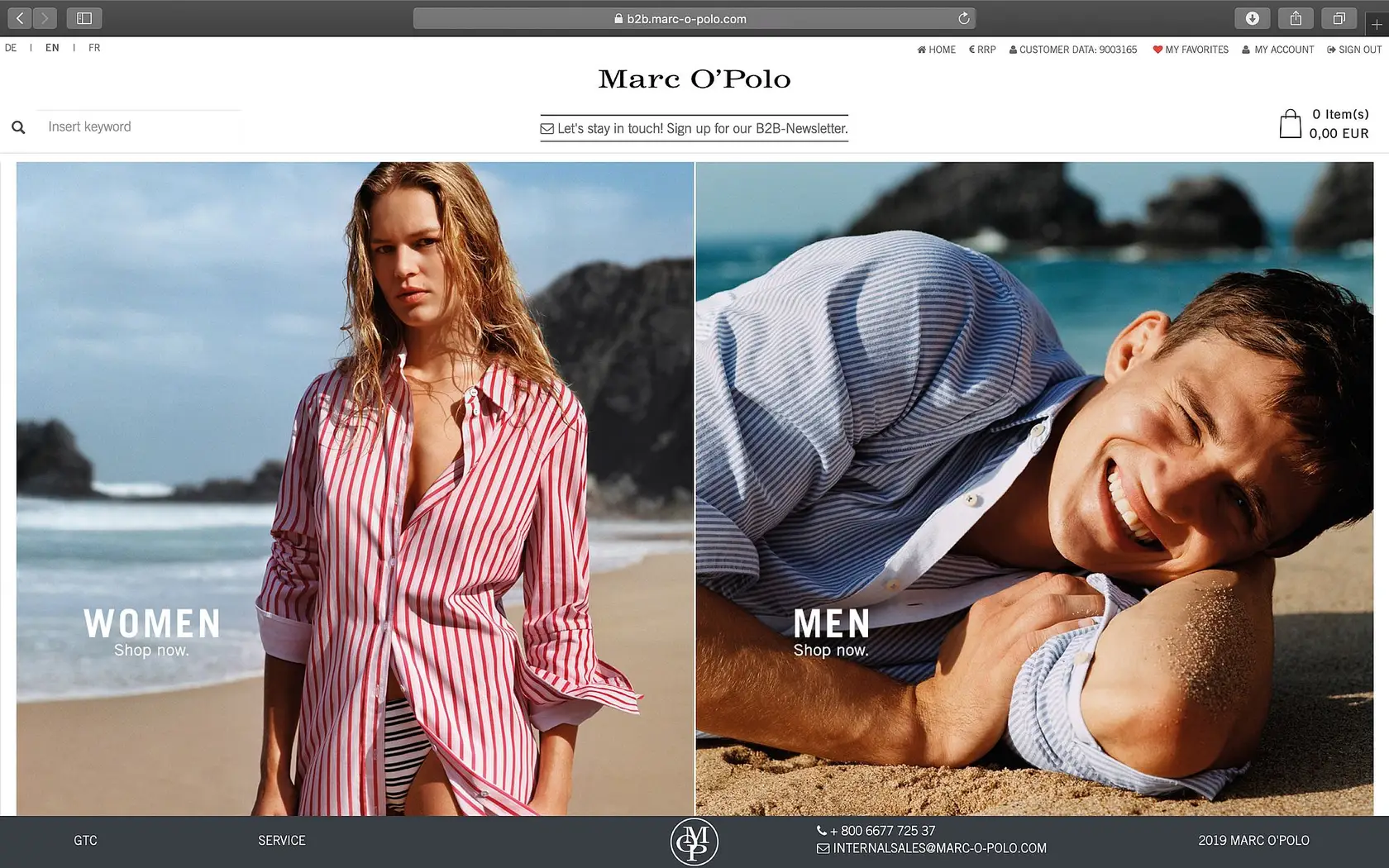 The MARC O’POLO B2B Webshop can be found at b2b.marc-o-polo.com. The conversion of existing accounts takes place automatically and also applies to Shoes & Accessories. For new customers wishing to access, the respective contact person will carry out the registration.
